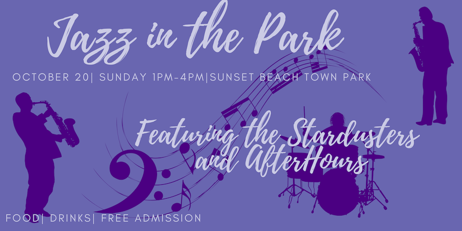 The Town Of Sunset Beach is sponsoring its first JAZZ In The Park complimentary event on Sunday, October 20th for an afternoon of music featuring two local bands, The Stardusters Big Band and AfterHours. The music is being played from 1 – 4PM